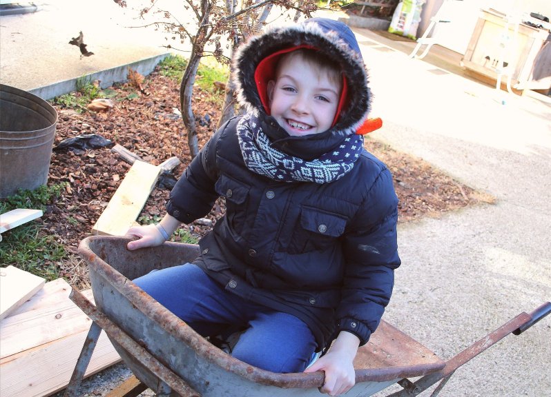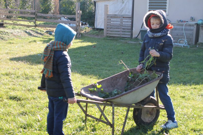 Noi siamo stati molto all’aria aperta, in giardino i bimbi si divertono molto, giocano con la nostra cagnolona Stella e amano usare gli attrezzi del nonno.